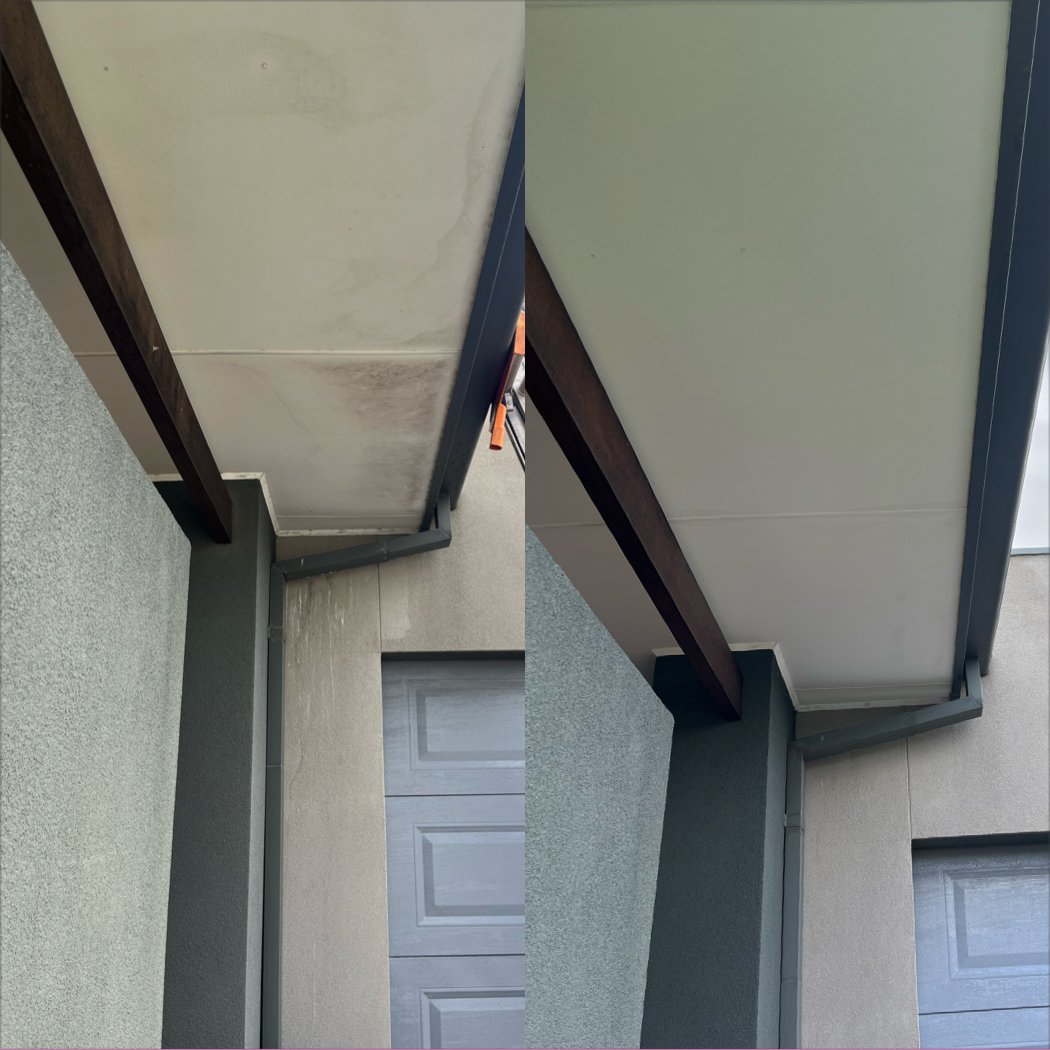 We use our gutter vacuum system we also clean by hand depending on the job type. We make sure we clean all the leaves, moss, weeds and bird droppings out of the gutters. To make sure there are no blockages in the down pipes we flush them with water to make sure they are flowing. We provide before and after pictures once the jobs completed. After the jobs done we will go around and do a general clean of the area.